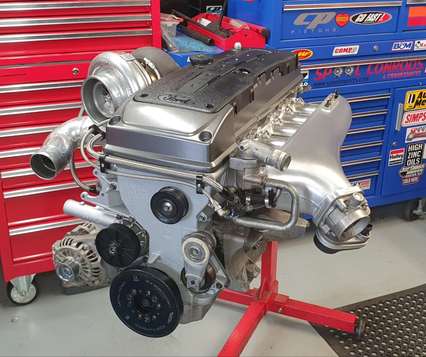 To make this a true comparison we have tried to keep every other constant the same. The 4.0L engine was removed from the FG and every bolt-on was removed and installed onto the 4.2L bottom end. We used the same head with TBRE cams, turbo, exhaust manifold, waste gate, injectors, plenum, oil pump, dump pipe, exhaust, transmission (TH400), converter, Eboost2, ECU ( Factory ) , same dyno and operator, same rear tyres, same fuel system and fuel (pump E85) , and coincidentally similar ridiculously hot days (i.e 37 degrees C) . Everything we could possibly keep the same we did.