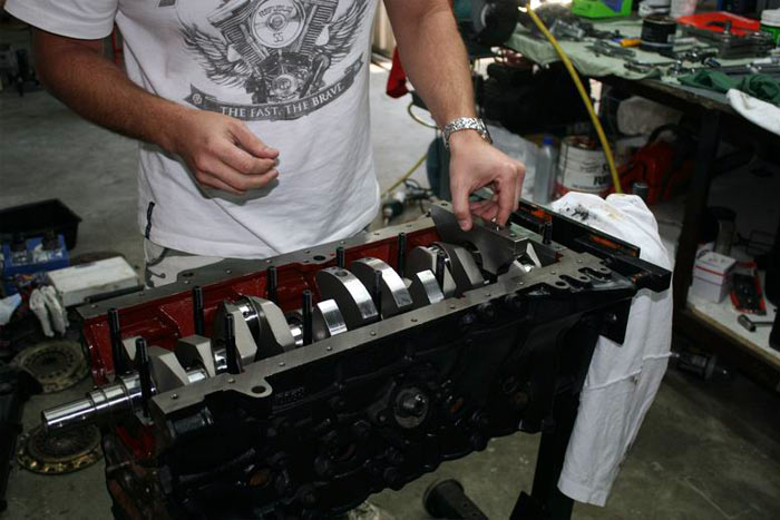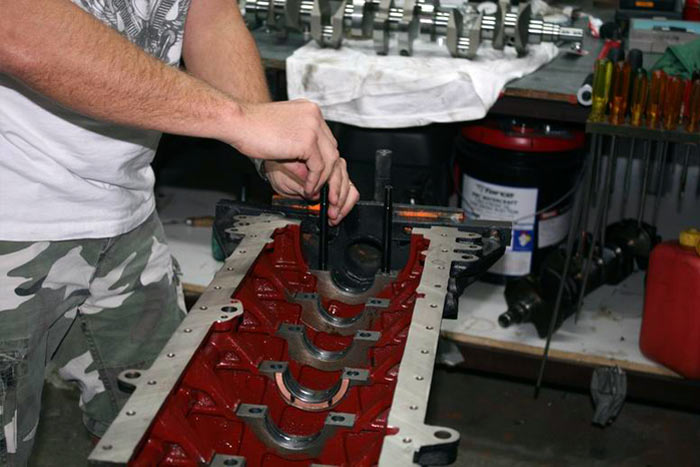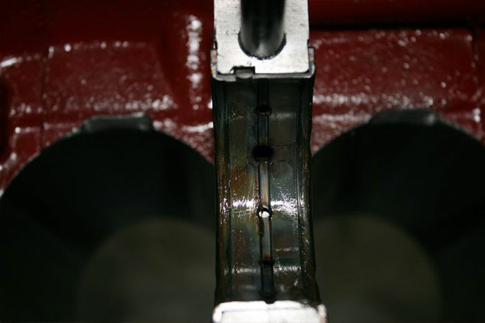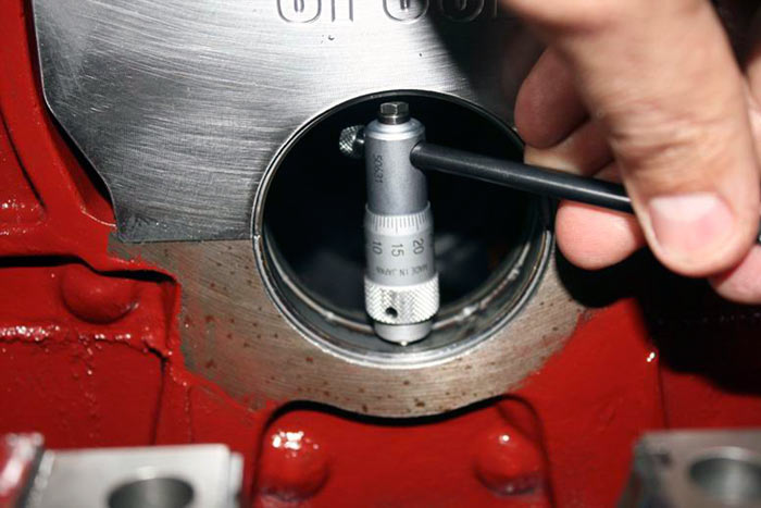 Inside main tunnel is measured with bearings fitted to check bearing to crank main clearance.
