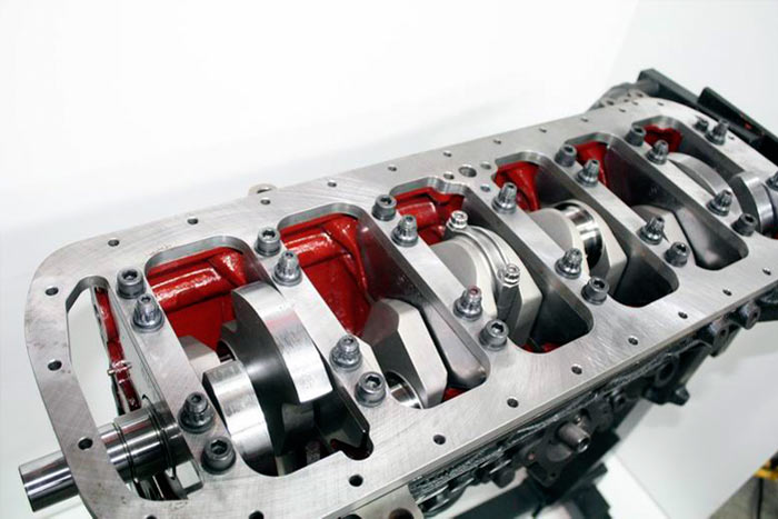 Due to the huge stroke, the block needs clearance to allow the conrods to rotate without fouling on the cylinder block. Leaving 50 thou of clearance allows for stretch at high rpm.