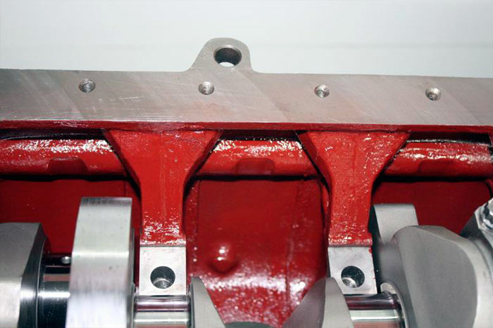 Fitting the main cap girdle that interlocks the block and main caps.