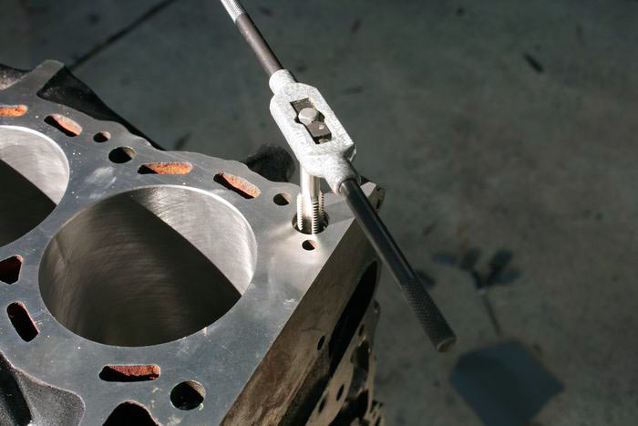 Block threads are cleaned using a tap - this ensures all threads are clean and free from damage and corrosion.